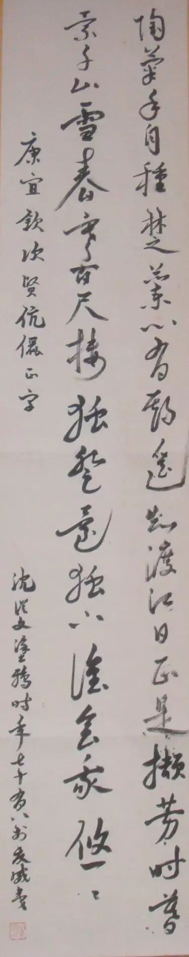 1981 年沈從文為作者及張欽次先生所寫的書法。該書法集錄杜牧的兩首絕句。